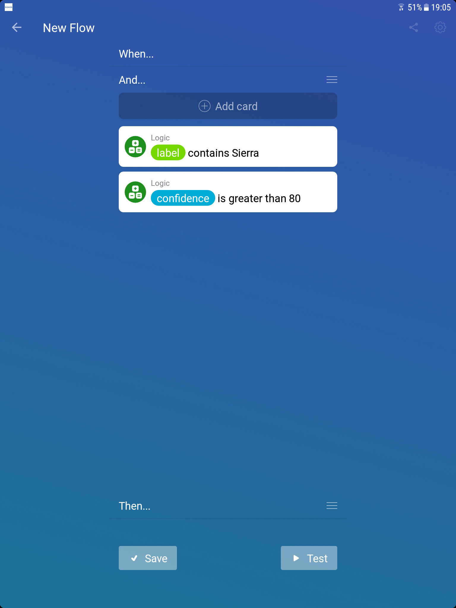 See a sample flow in this thread here [NEW APP] FACE++ Face Recognition for Homey