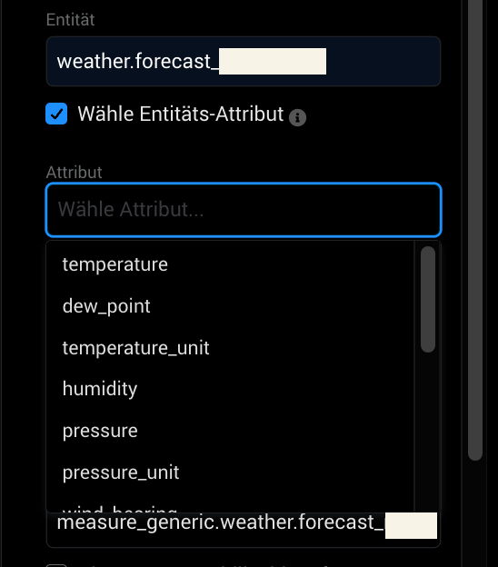 ist das die Standard-Wetter-Integration? Kannst du bitte in den Entwicklertools schauen, welche Attribute angezeigt werden. Vermutlich auch diese, oder?