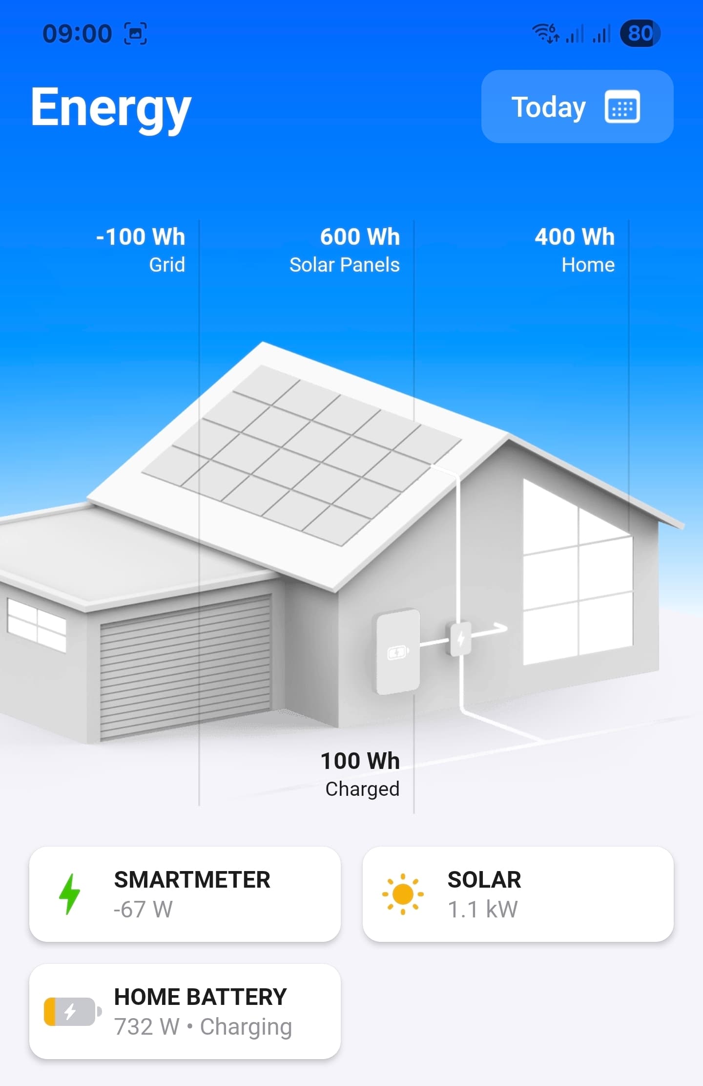 You should have a small smart meter after your energy meter (the “big” one from your energy provider). It’s often a small box on the DIN rail with a LCD display. Your app shows grid energy, so it has such a meter.