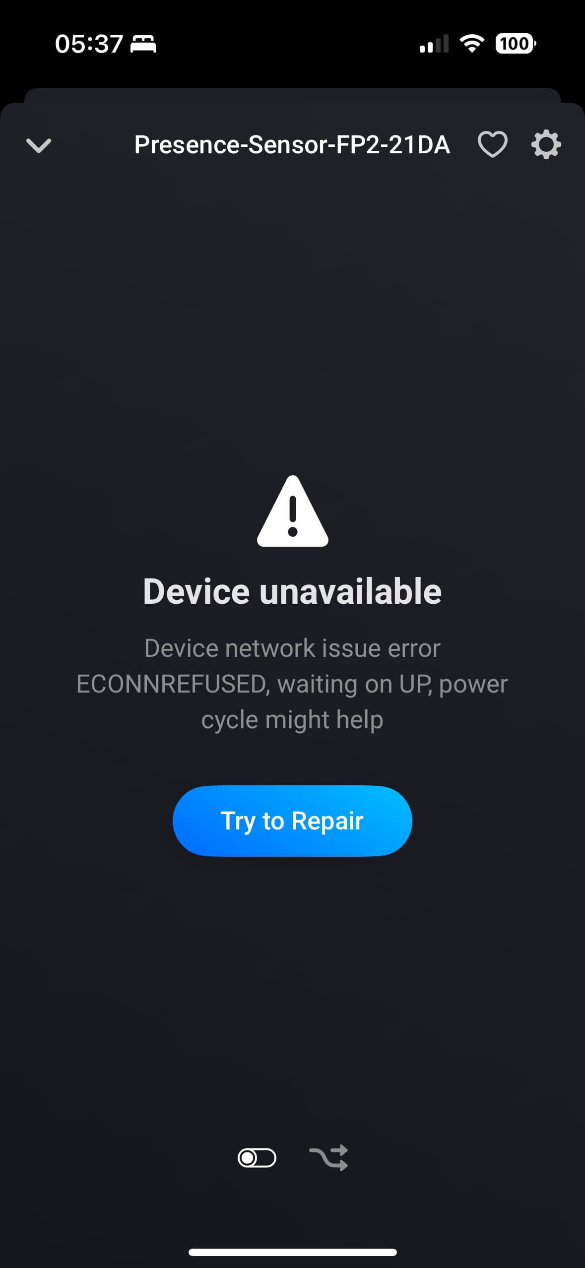 Not many instability reports since last release. Can you pull the power on the FP2 and back on? Is the device unavailable in Homey with a message?
