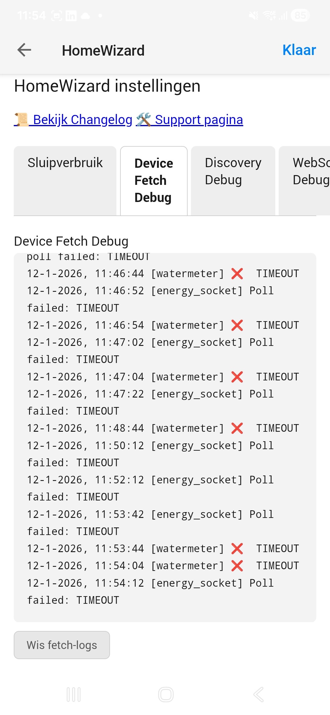 Both your watermeter and energy_socket struggle but if that is related to Homey or your watermeter and socket I cant tell. Anyway, keep an eye on that “Device Fetch Debug” to see if it is incidental timeout or very often.