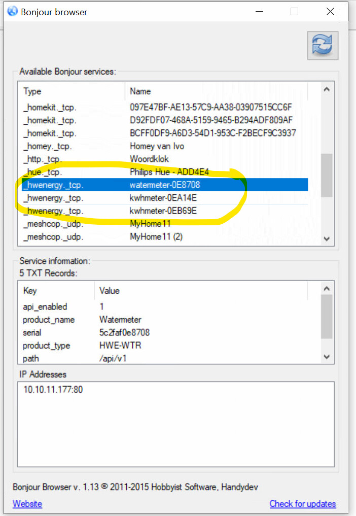 Check the mdns discovery browser apps to see if the kWh devices show up there.