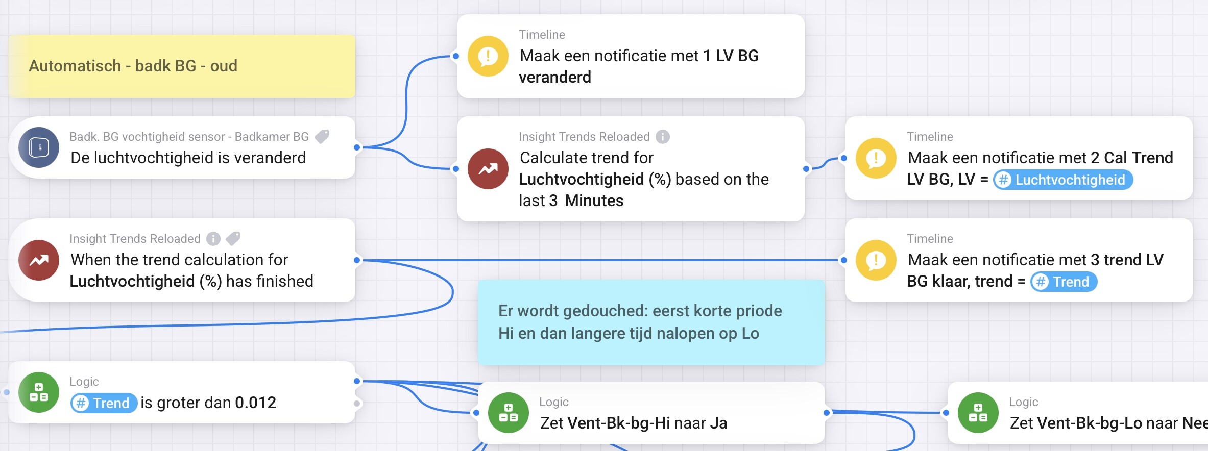 I have a flow to turn on the bathroom fan based on the steepness of increasing humidity (LV), based on the trend of the past 2 minutes. Doesn’t work anymore either.