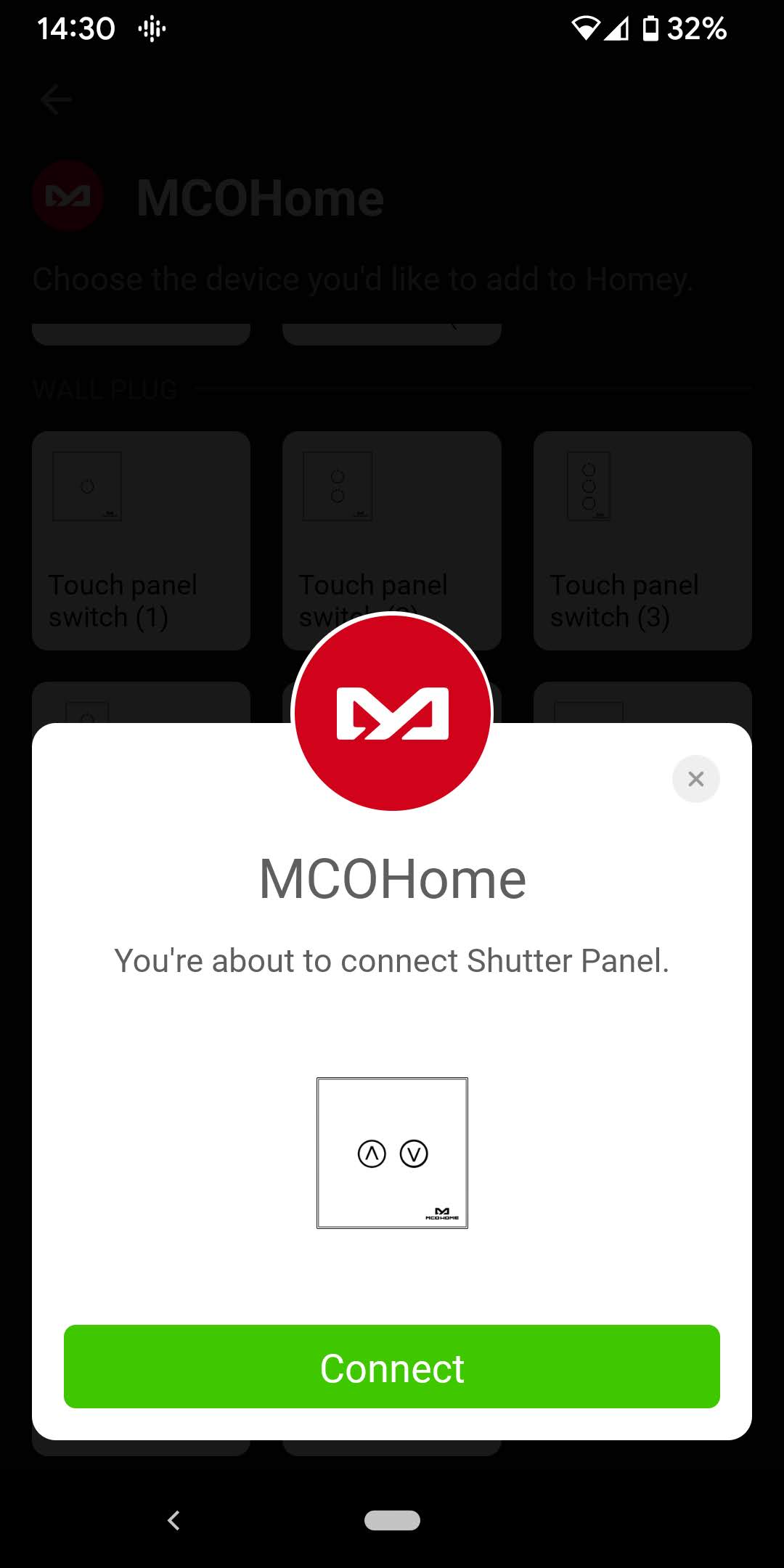 I have a panel switch which I wish toinclude on Homey. WEhen I go through the inclusion proceedure I select MCOHome followed by the last item on the list ‘Shutter Panel’. The picture is almost identicle to the item but rotated through 90 deg.