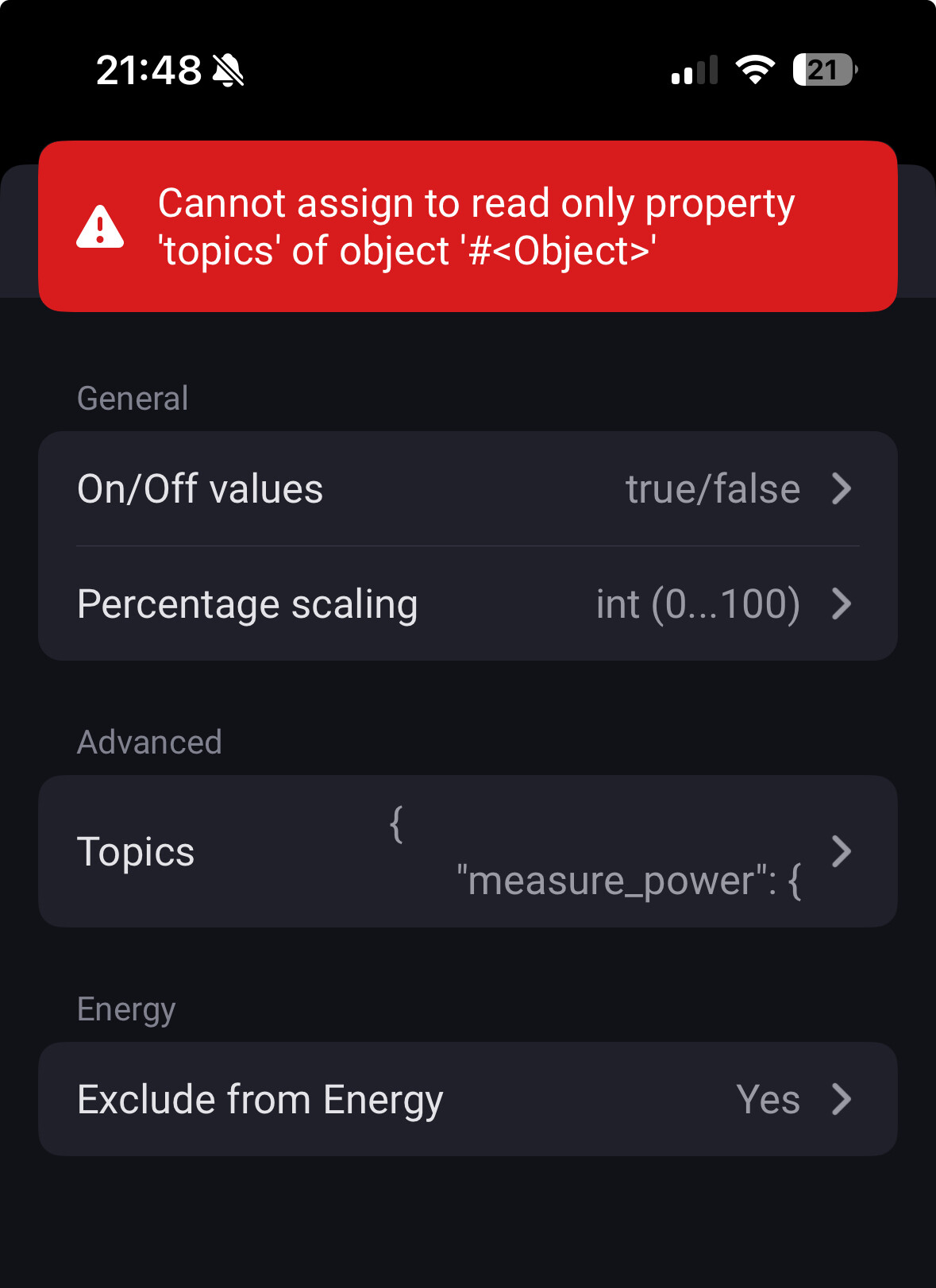 Hi @RonnyW . I’m testing version 4.3.2 and I’m getting an error when trying to set Cumulative energy measuring. Both if I try to set it by itself or if I try to set imported/exported meter capability trough device settings UI