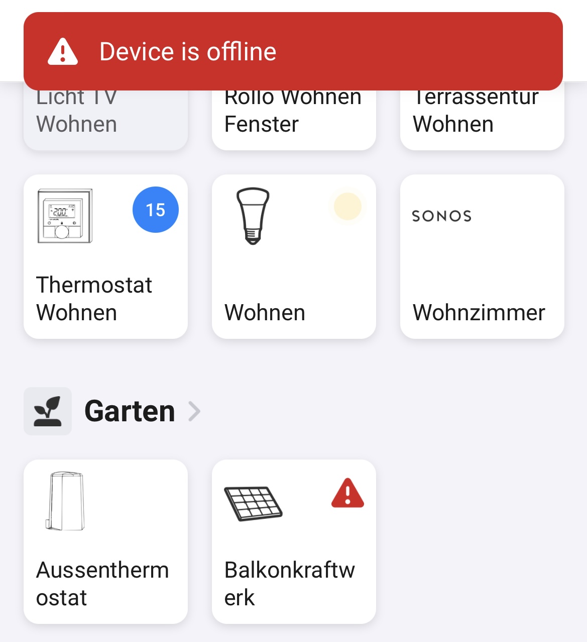 The switch that I have set to solar production, on which my balcony power plant is connected, goes completely off. It permanently shows Device offline.