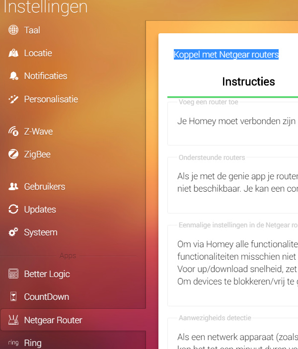 Of course it is all down the reading the instructions tab -> ‘Voeg een router toe via de Homey tab