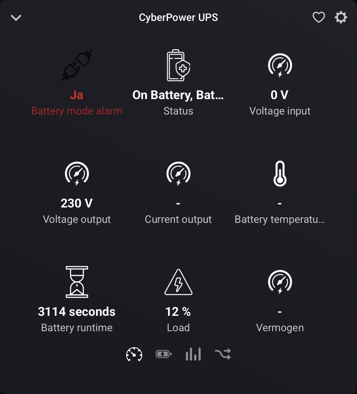 My APC Smart-UPS 1000 is only showing Battery %, Battery mode alarm, Status and Battery runtime.
