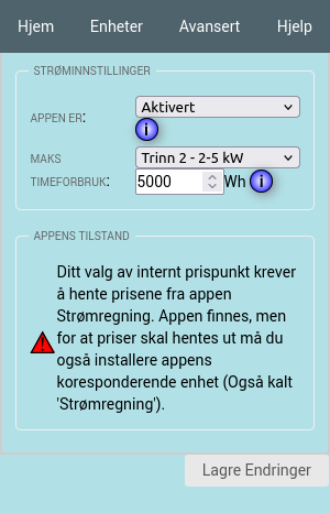 In the log-page press the button âInfo fra Strømregningâ and send me a personal message with whatever you get in the log window.