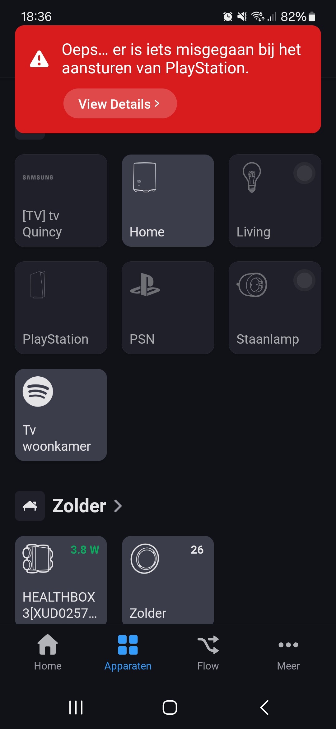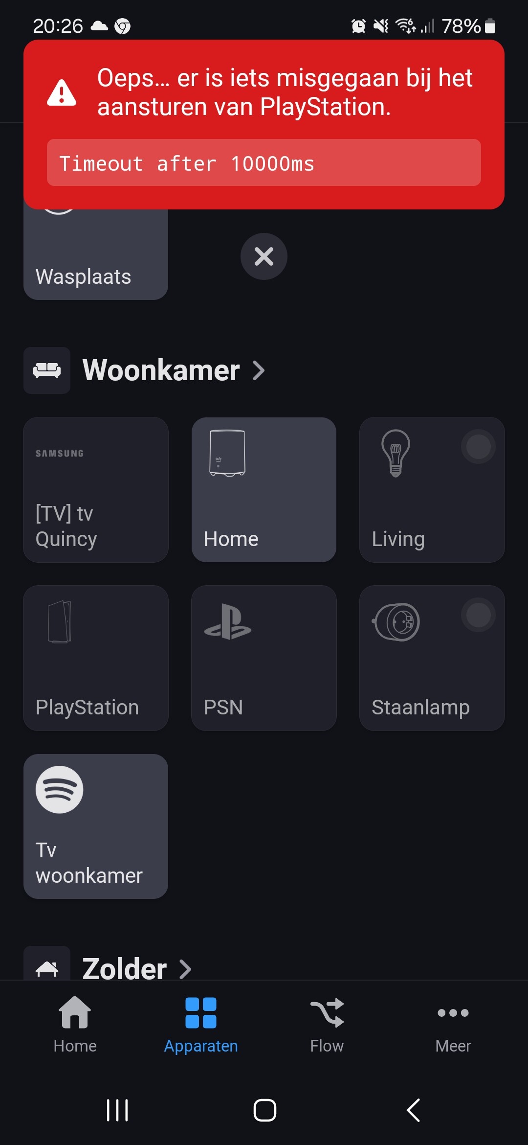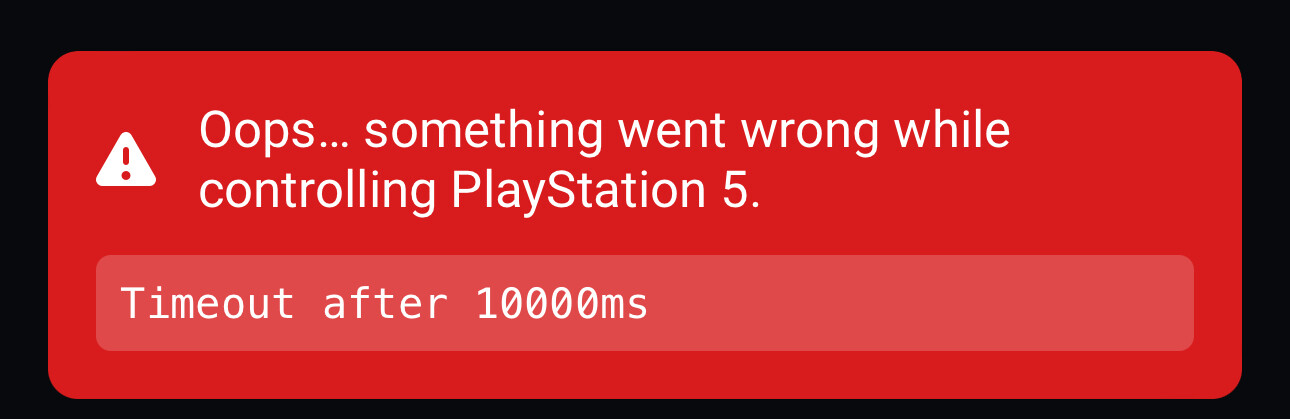 Ik heb de stappen allemaal uitgevoerd maar als ik in de homey app de playstation aan duwt gebeurd er niks. In bijlage heb ik een foto toegevoegd van de foutmelding.