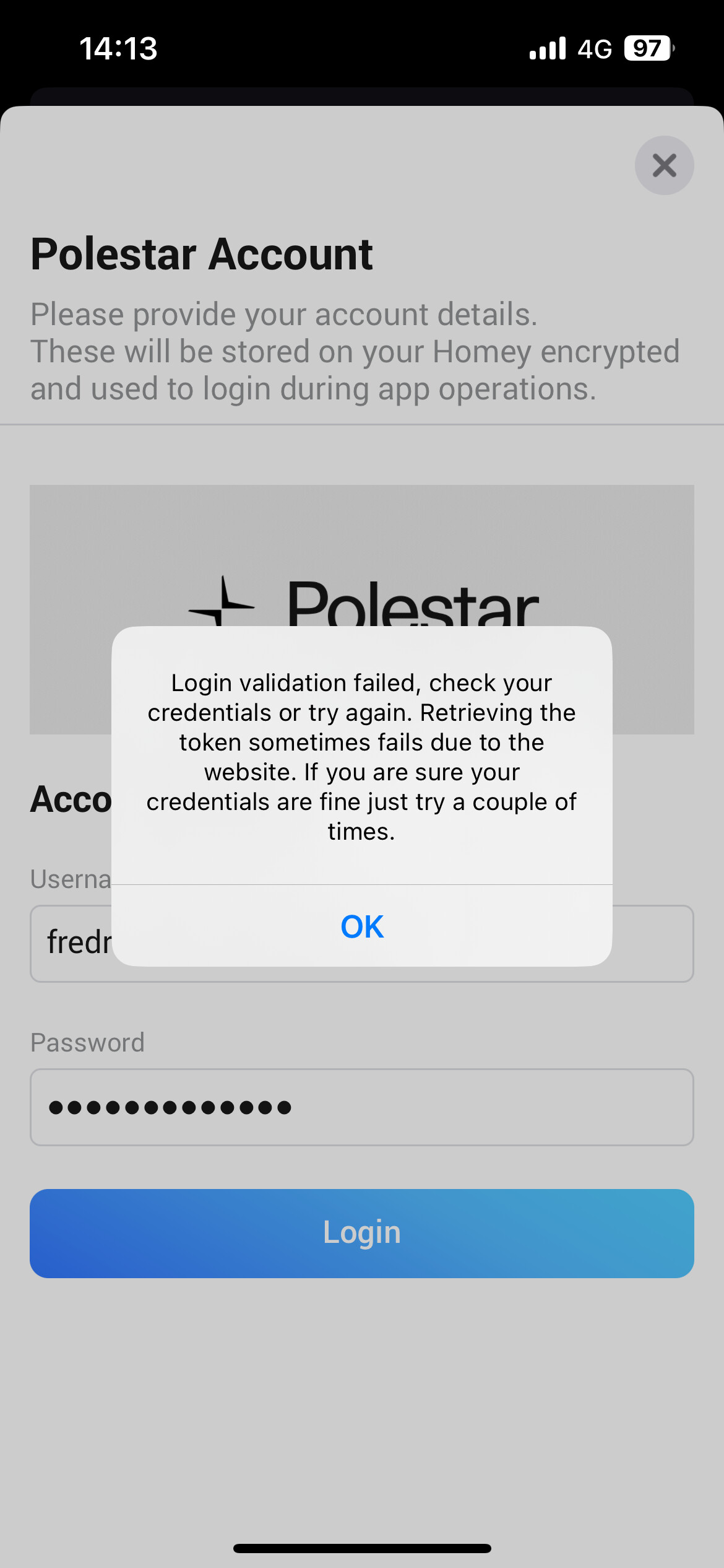 I’ve also changed my password in the polestar app, but this doesn’t help either?