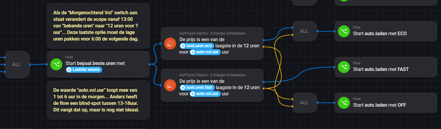 To clarify, I calculate the number of ours I need in âlaad.uren.fastâ and âlaad.uren.ecoâ and the field âauto.vol.uurâ moves from 1 to 6 during the afternoon⌠But this flow has a blindspot from 13:00 until 18:00 for the possible cheap hours in the early morning (will happen in wintertime again ![]()