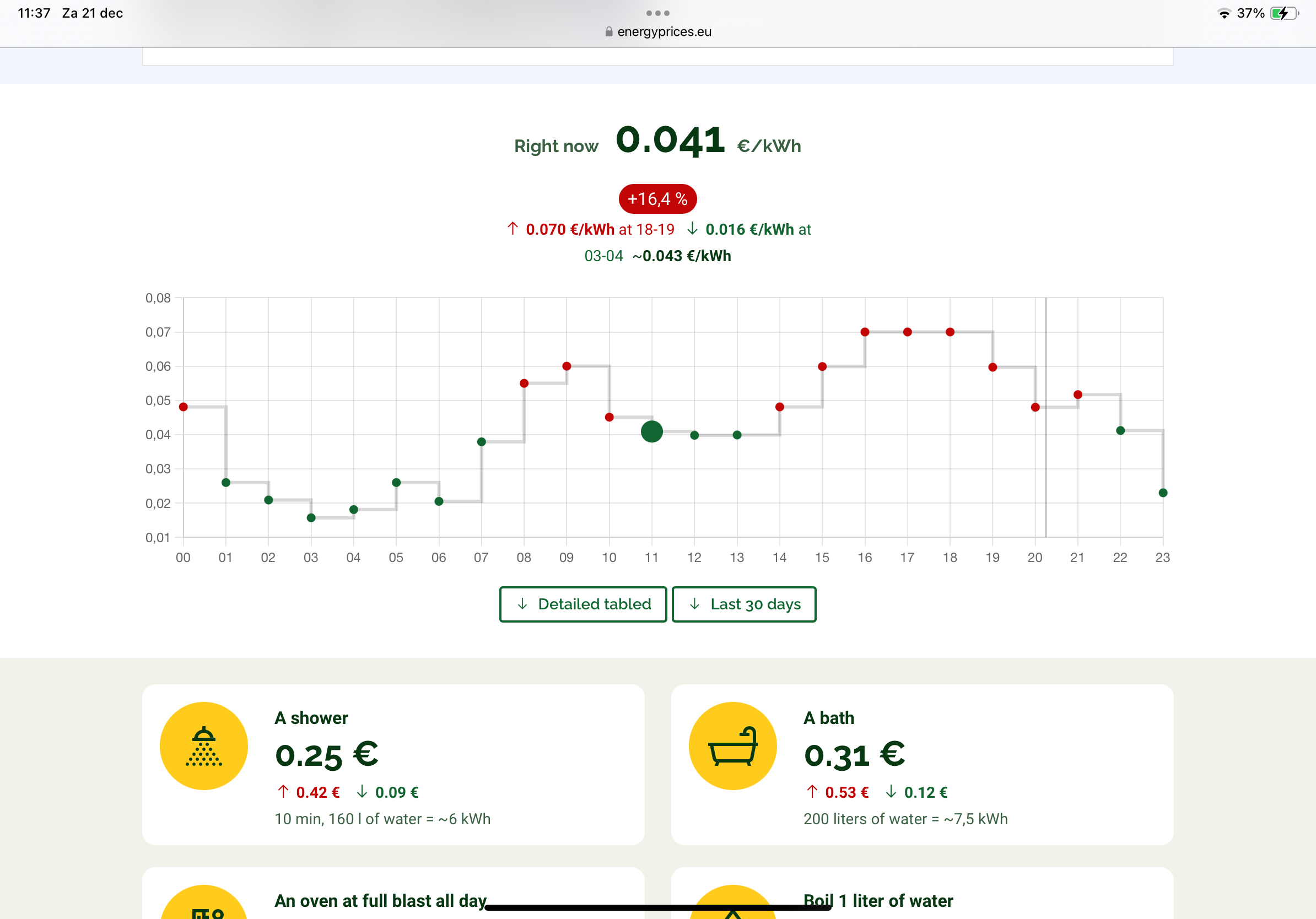 Official prices for this day (21.12.2024) to the left and todays prices according to pbth to the right