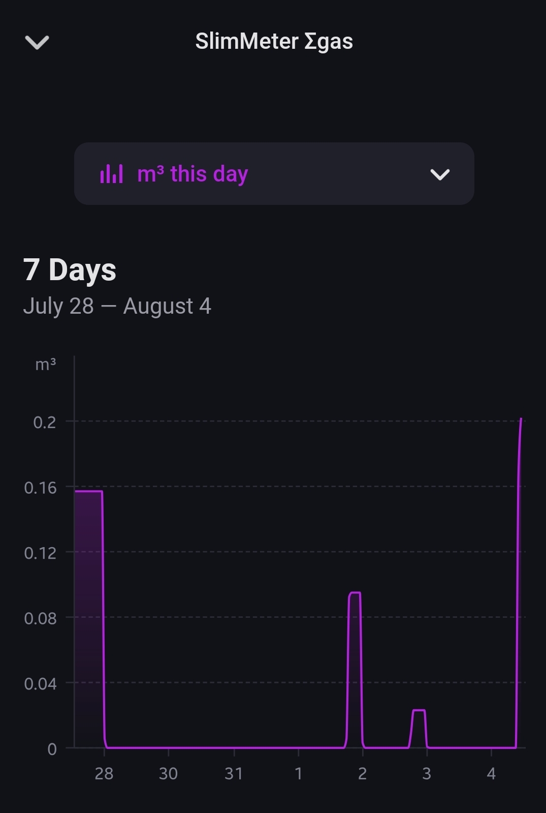 Sometimes (see 1 Aug) the app shows high costs, despite a low rate and low consumption.