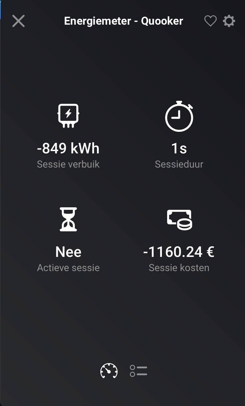 I now have -849 kWh for the Quooker and I would have spent -1160.24 euros. You understand, something is wrong, although I now have prices, I didn’t have that at all before. Now I don’t know if I should wait a bit until the Quooker has been on again, so that this information will adjust itself?