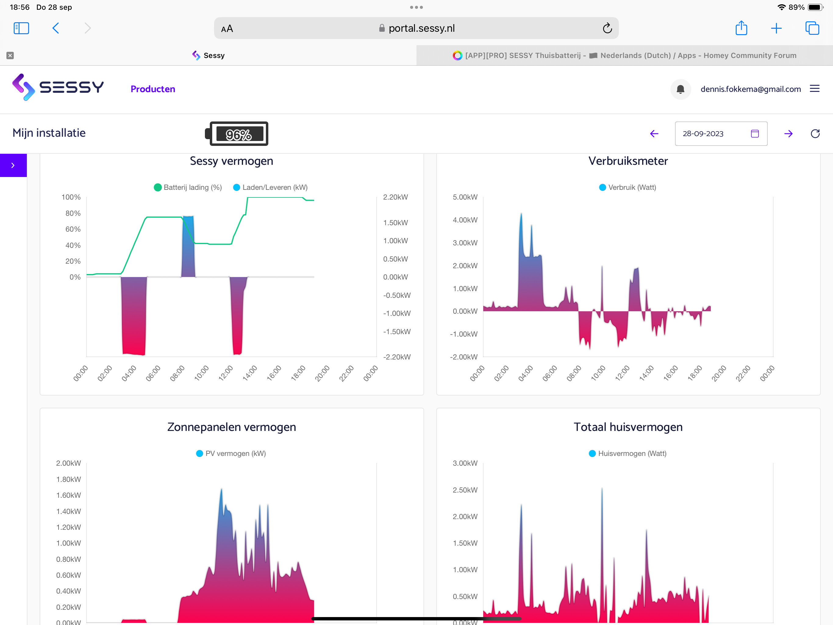 Afgelopen nacht en vanmiddag heeft de Sessy zich volgeladen, afgelopen nacht tot 80%, vanmiddag tot 100%.