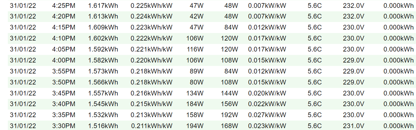 Power is updated, but Energy, Efficiency, etc. is missing.