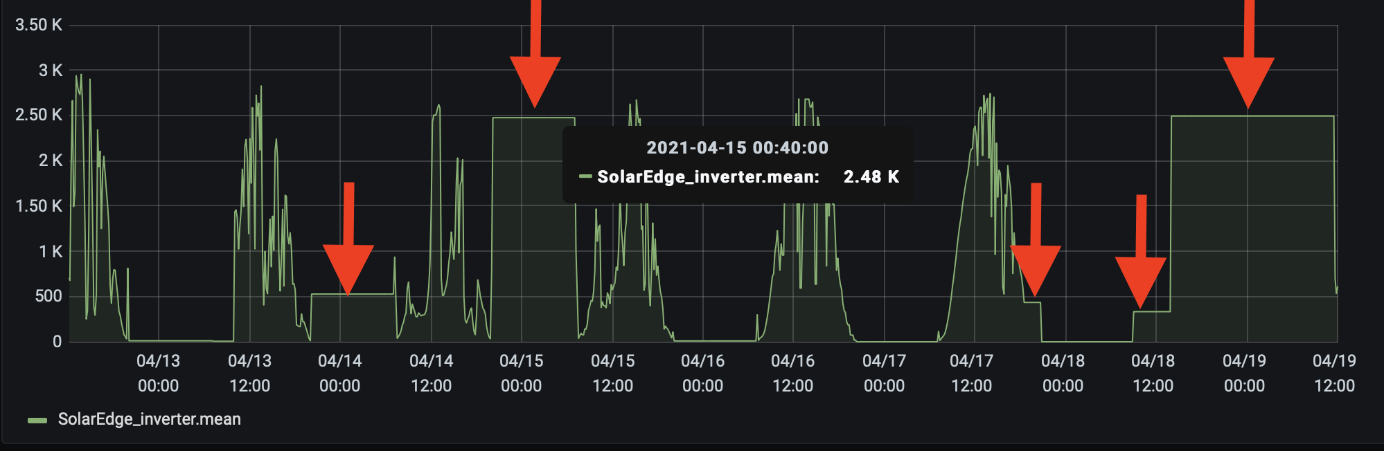The solar power value seems ok, but consumption value is now too high. It was too low when not producing…