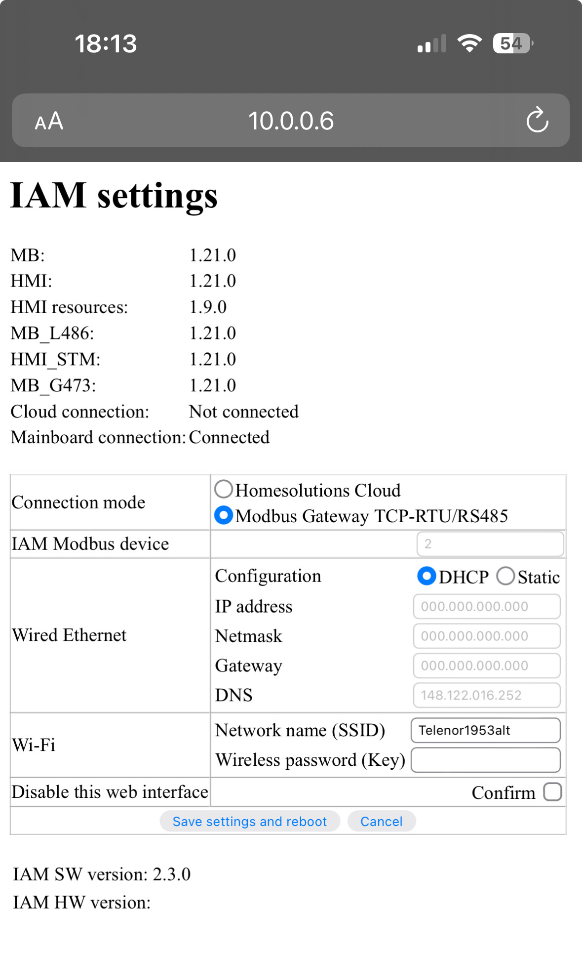 Looks like that maybe worked out the problem for me as well. I have had a lot of problems with the IAM-module being offline from my Homey-integration, but it seems like Wifi-settings may have fixed that issue, so let`s hope that the IP-trick works here.