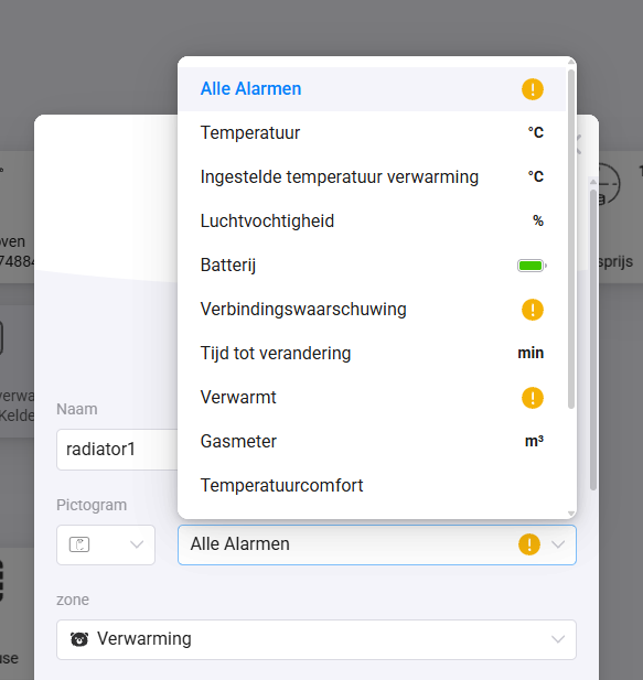 Als hij als radiator staat, kun je het status icon aanpassen via settings naar temp. Als radiator staat hij niet in klimaat. Alleen als thermostaat staat de valve in klimaat.