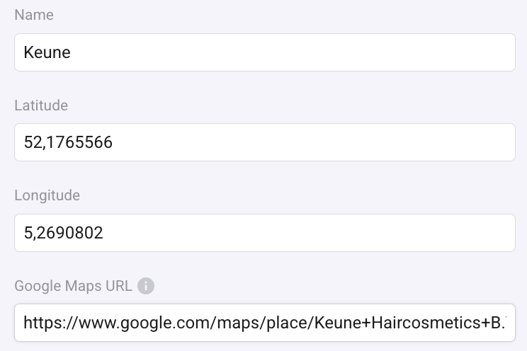 The strange thing is: I used dots. But it’s automatically replaced by a comma when saved (on a Mac, using Chrome). No matter if I enter coordinates or url, after saving and re-opening the dots are replaced by commas. However, when I open on my phone the coordinates are displayed with dots (so, it’s saved the proper way?).