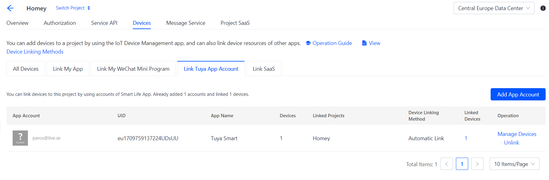 I created new accounts and I can finish the configuration in Homey app and add the a new Tuya device (motions sensor).