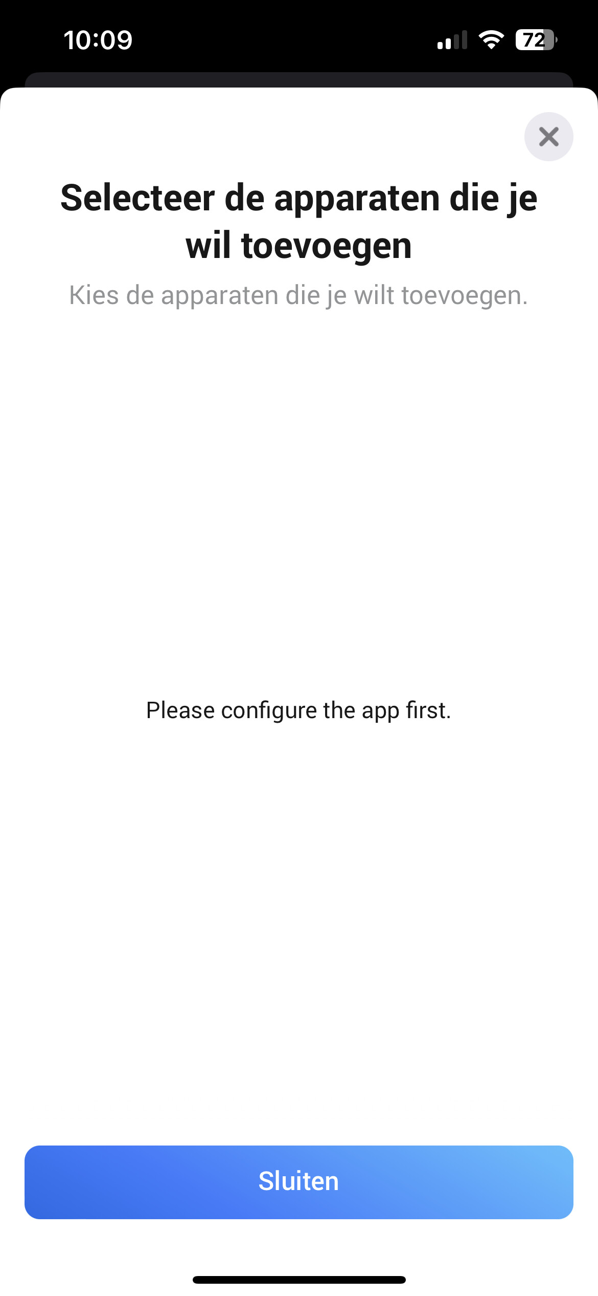 This message “Please configure the app first” when “Add device” - “Tuya Cloud”… It will not go away.