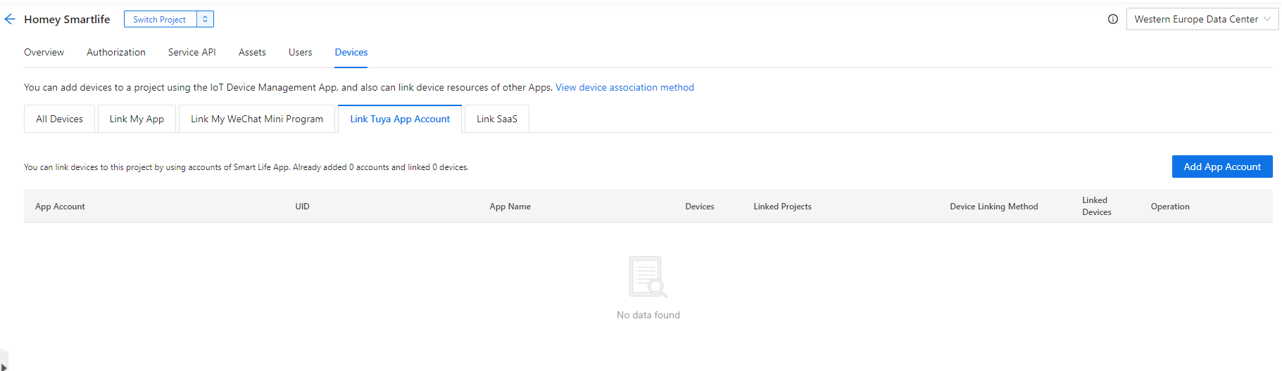 Thanks but unfortunately not. No devices are shown there as can be seen in the screenshot below. When I press the button add app acount I got the message from previous post. Looks like a chicken egg problem.