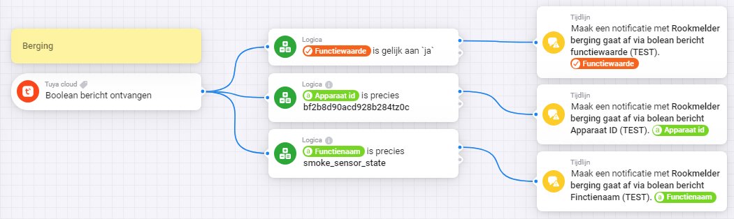 Does the smoke sensor send a message at all? Connect a timeline card directly to the triggercard, to find out what message is sent by the smoke sensor.
