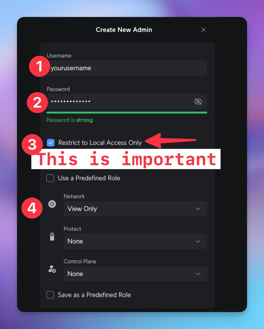 Whenever you create a new user in UniFi you’re required to create a local user, so indeed for security reasons you will not be able to logon towards an external IP, and your Homey will only be able to connect. Which is a good thing.