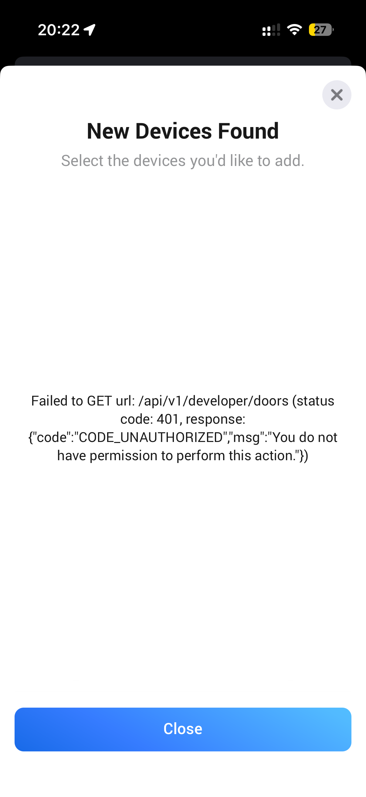Hi I’m trying to add My Access Reader G3. I already created API key and add in the app. when I try to add any access device I’ve got 401 error. I’m the owner of the UDM. Creating API key via console menu in integration section. Anyone have this issue?