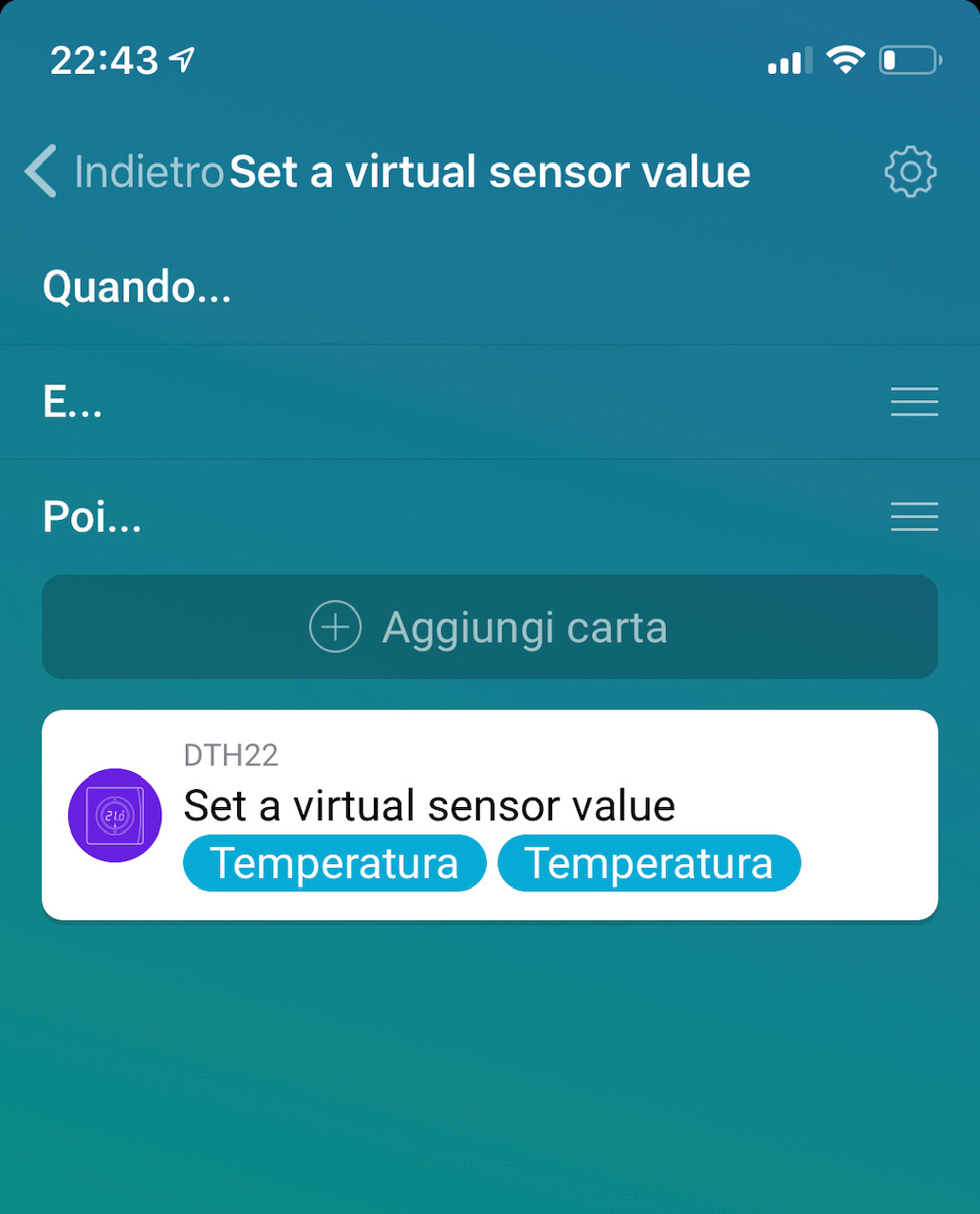 Edit 2: your device DHT22 is not reporting temperature values, is your virtual device. You must select a real device reporting temperature (your sonoff device tag).