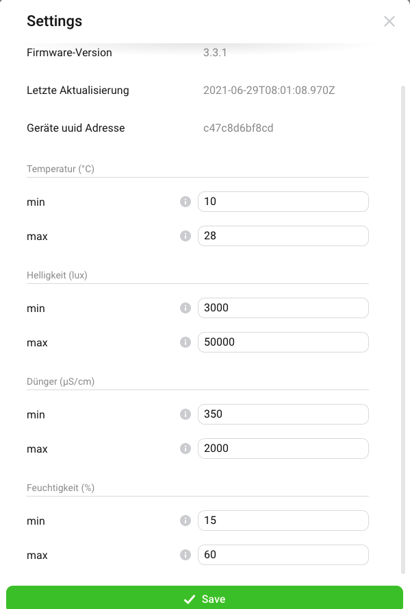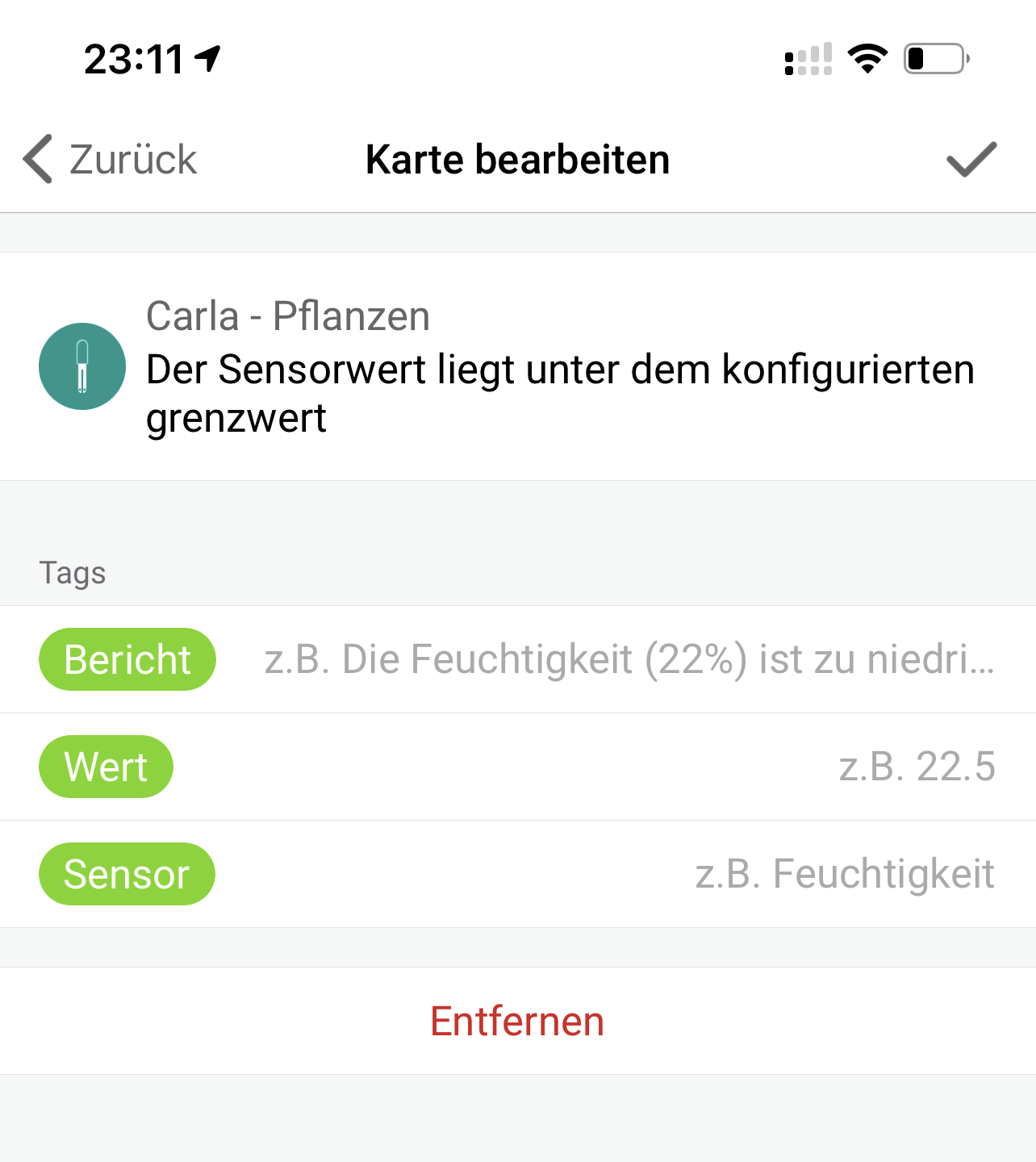 If a plant has not enough humidity or fertilization I want a notification. Only if it is not enough not if it is too much.