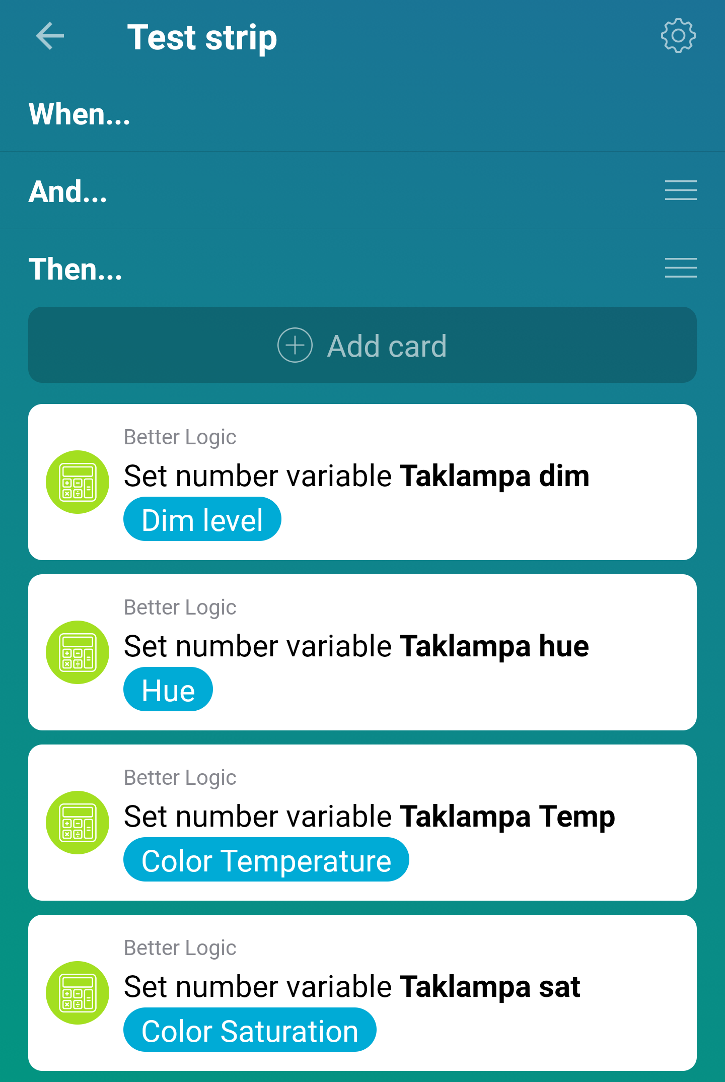 Iâm looking to control my Yeelights by using Logic/Better Logic for saving/altering current state (on/off/color etc) - thus far Iâve been able to make it work using Number variables, like: