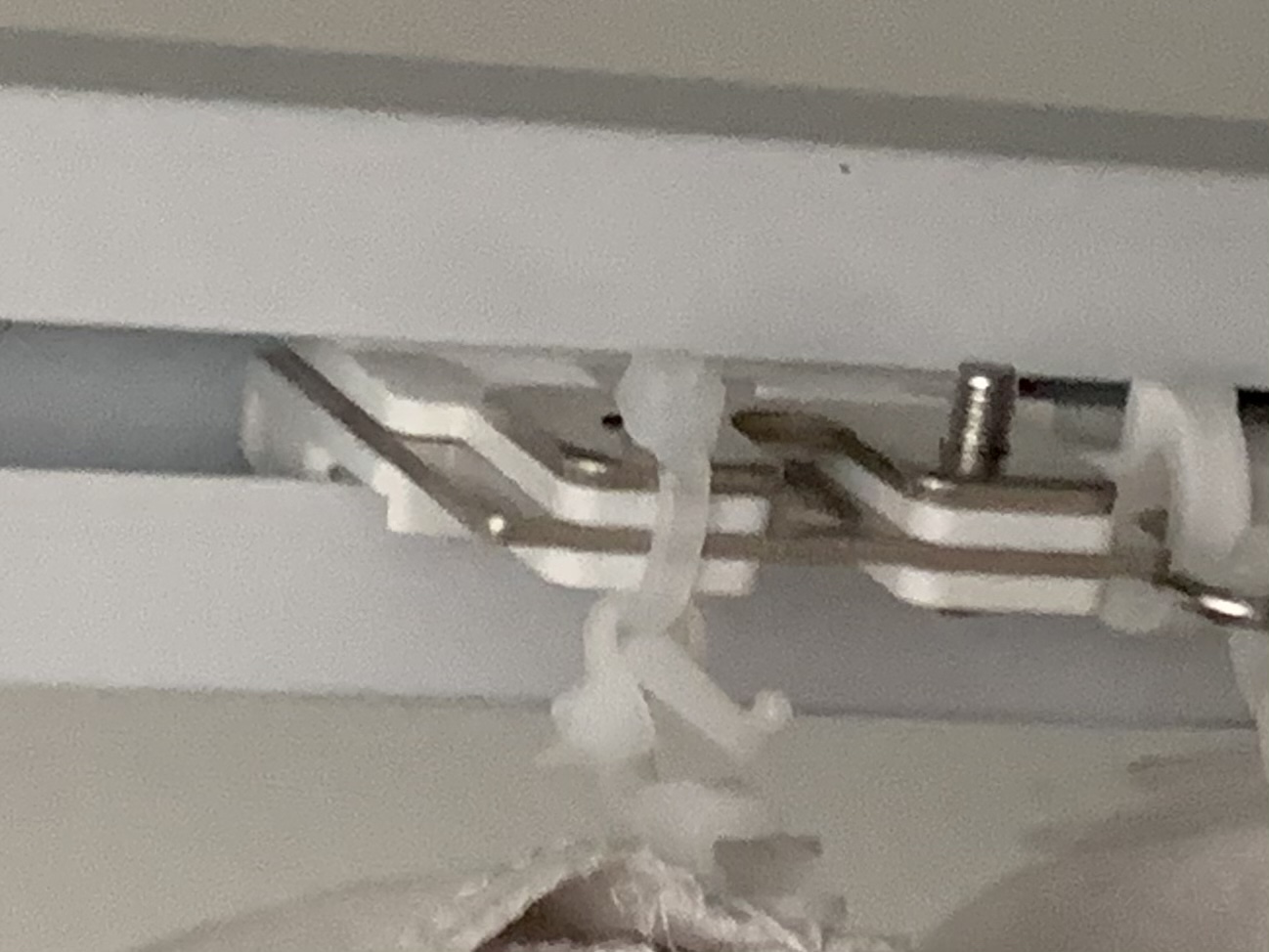 Ik zie dat bij jou de gordijn in het midden mooi aansluit. Wat voor haak gebruik jij voor de achterste gordijn? Ik heb de gordijn zojuist opgehangen maar het gordijn sluit niet mooi.