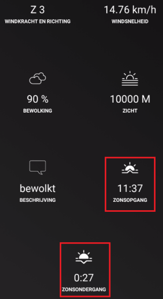 Another note, the OnecallAPI includes UV data, however in UVI value in the ‘current’ data set is not actually a ‘current’ value… It changes in the middle of the night, and then remains fixed for the day. So it seems it is a forecast. It doesn’t seem very accurate, there’s little difference between a clouded and a sunny day, and the UVI ranges between 6 en 7 the past weeks.