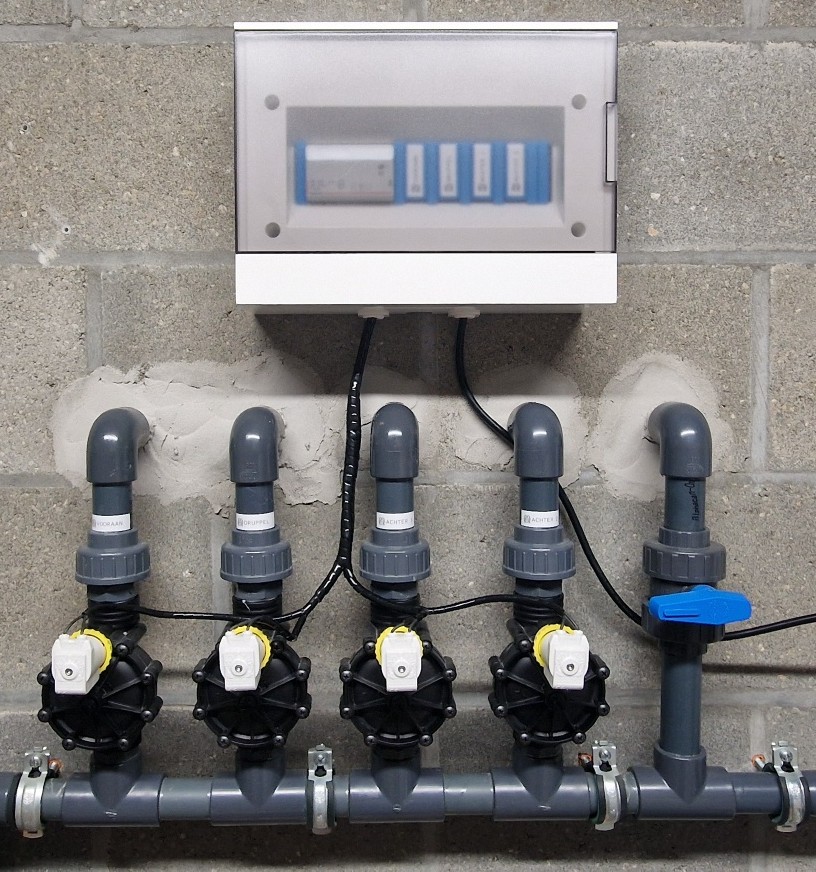Ik heb er uiteindelijk voor gekozen om een zekeringkast te gebruiken en daarin alles te gaan bouwen. Deze hele combinatie gewoon met een stekker te verbinden aan het stopcontact, daardoor wordt het gezien als een apparaat en niet als vaste installatie voor een keuring. Dus eigenlijk heb ik gewoon een fancy “overkill” beregeningscomputer in een bakje gemaakt .
