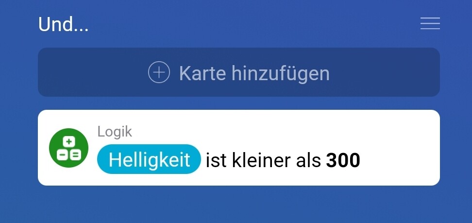 In diesem Beispiel wird das Licht nur noch einschalten, wenn die Helligkeit unter 300 Lux ist.