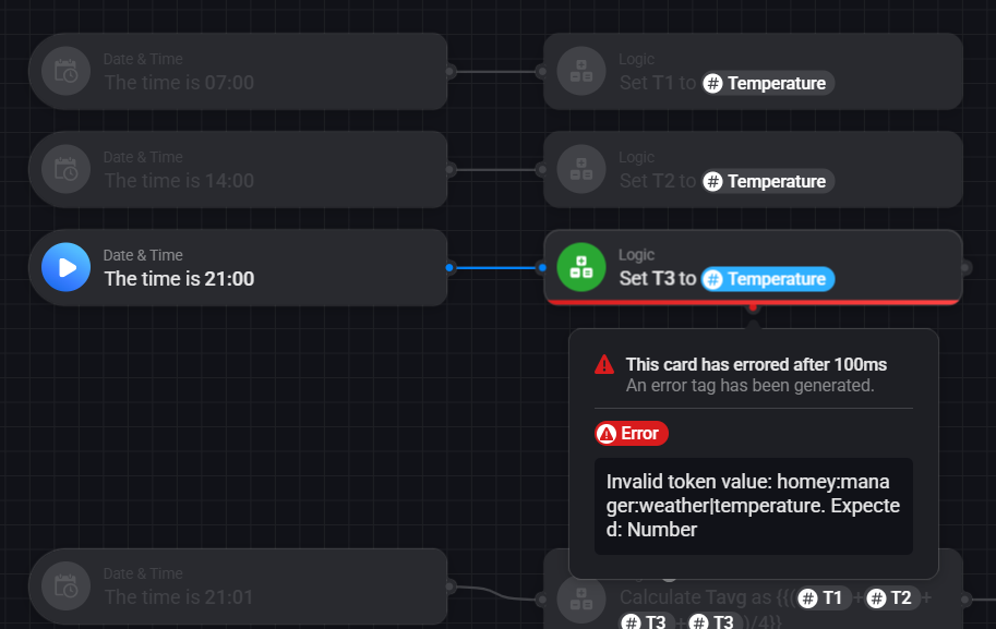 Hm, when I tried to test it now, it shows an error message. It wasn’t there when I built the flow, so probably Weather/Temp variable have some expiration?