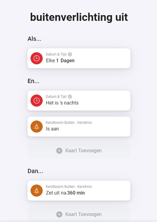 Dat stelde ik al voor, maar het doel van deze flow is mij onduidelijk, is het voor buiten verlichting of voor een kerstboom of voor iemand die voor de deur staat of …?
