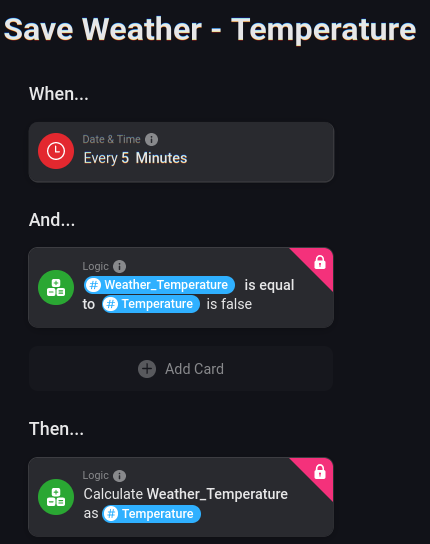 The blue [Temperature] tag in the cards itās in, is from Homey āonboardā weather, you can select it like this: