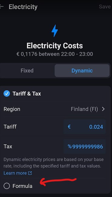 Fortunately, in the Homey Energy app, you can also create your own calculation using your own formula. However, creating a formula can also be quite challenging.