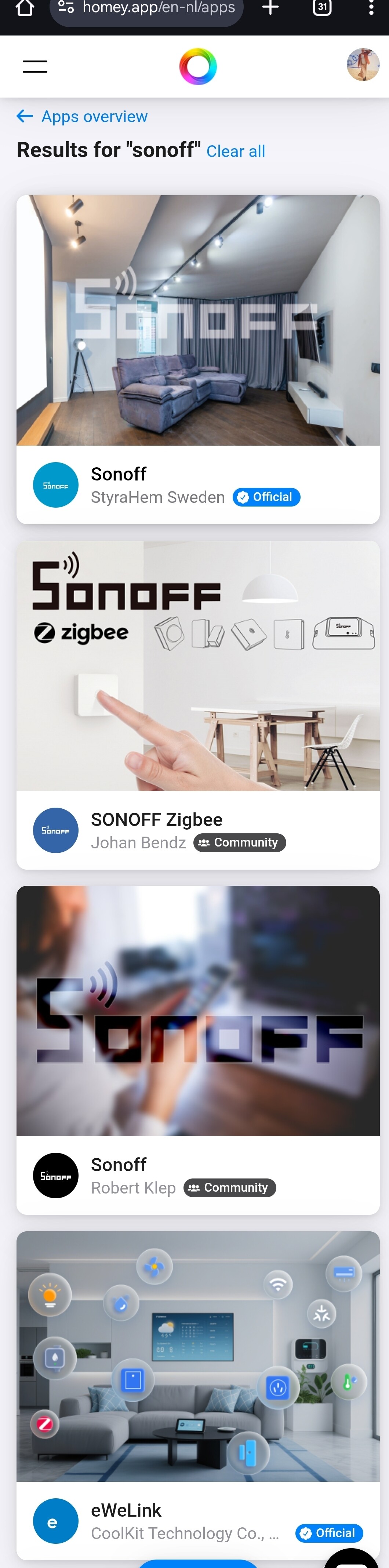 I wonder if the sonoff app does not support the early 2019 Homey?