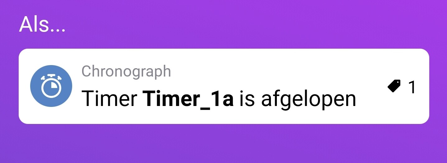Bei anderen Chronographen-Timerkarten, z. B. „Timer ist abgelaufen“, geben Sie genau denselben Namen ein, in diesem Beispiel Timer_1a.