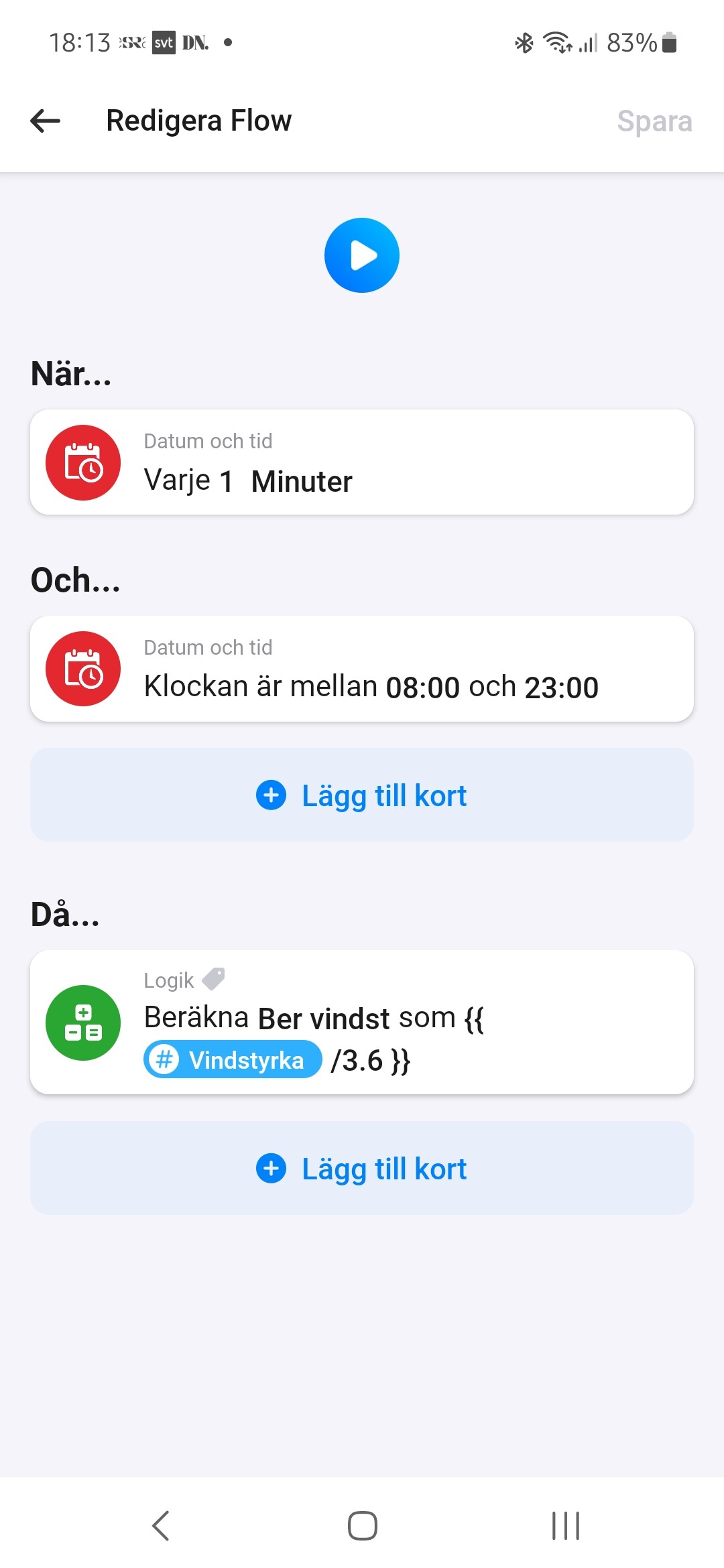 The variable #VINDSTYRKA comes from Netatmo in km/h and I create a new variable in m/s as a division of #VINDSTYRKA divided by 3,6.which I use to present the wind strength (Swedish = Vindstyrka)