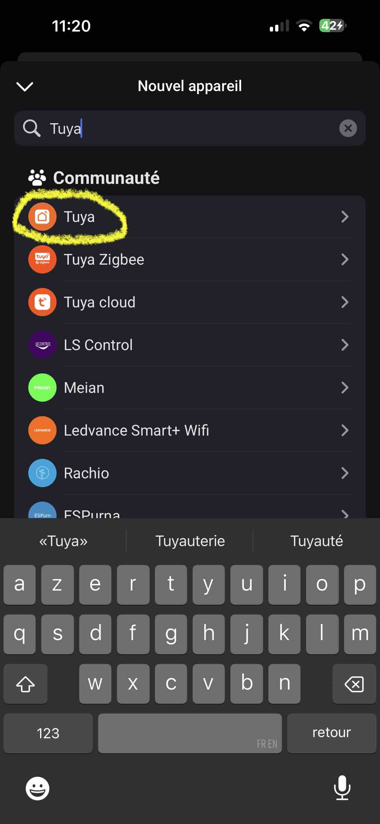 However, when I add a new device and scroll down through the brands, I see three options again (Tuya, another Tuya, and Tuya Cloud).