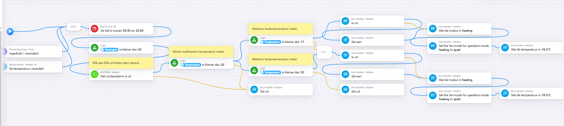 Ik heb de flow even herschreven want de Airco lag eruit en moest ik opnieuw toevoegen. Hieronder een screen shot van de flow, ik hoop dat het leesbaar is, ik zou niet weten hoe ik hat anders moet delen.