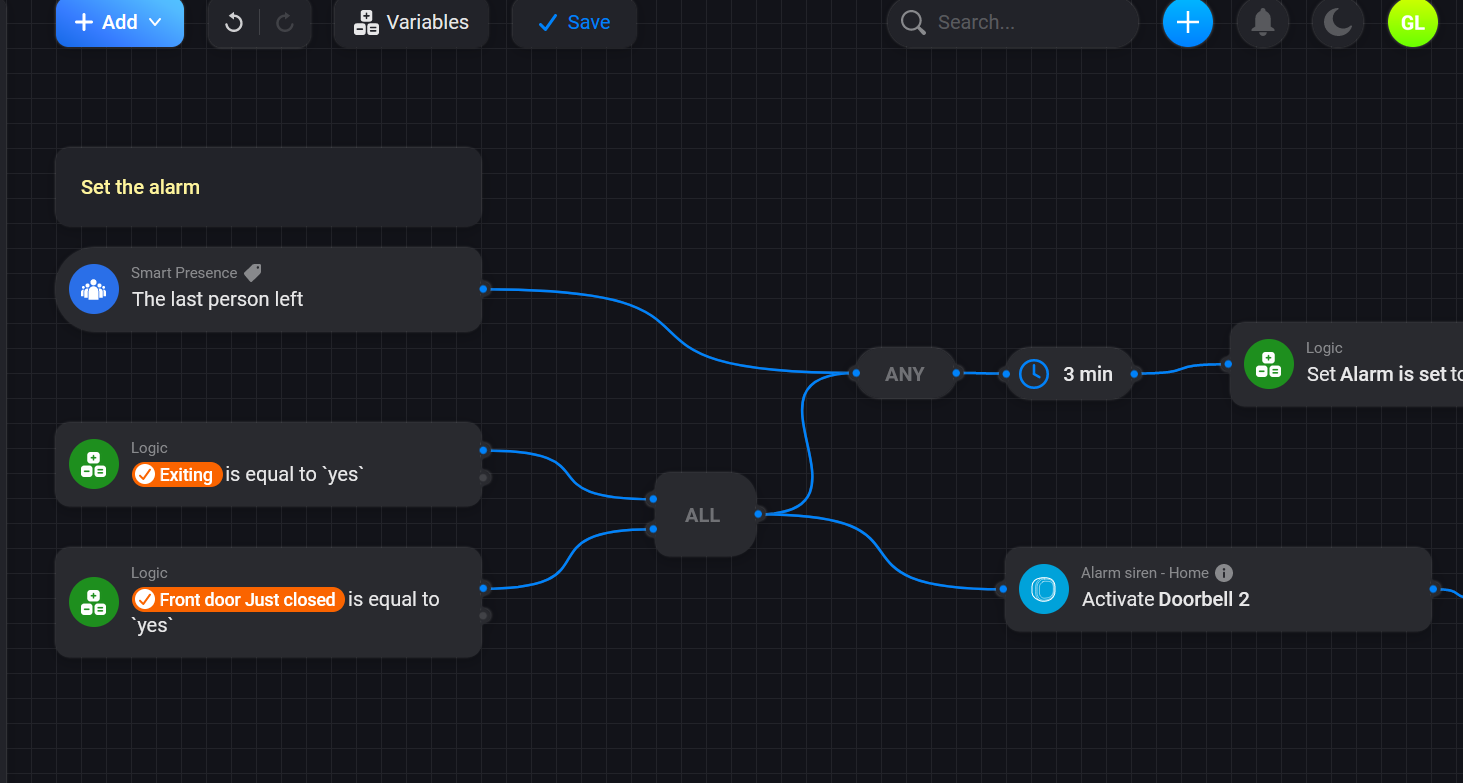 I had imagined that when both the conditions were met, DOORBELL 2 would be activated. It isn’t