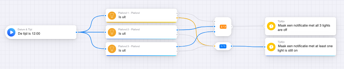 One off the 3 lights is on. So the ALL-card is false. Any yellow line can trigger an action needed if not all lights are off.