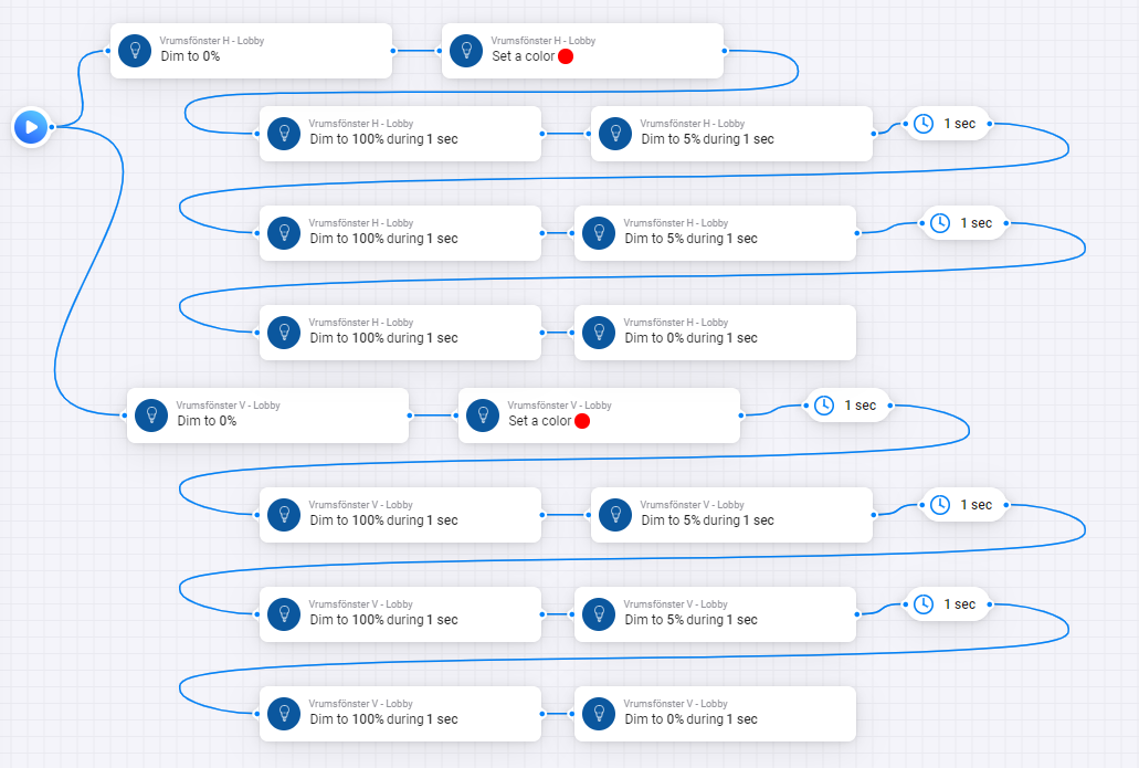 At home and testing. A shorter flow involving Zigbee (IKEA), a Z-wave dimmer (Qubino flush dimmer) and a 433 MHz switch. The dimmables supports “Duration”.